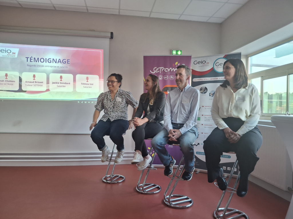 La soirée s’est conclue par un temps de témoignages croisés particulièrement riche, réunissant Sarah Choleau, RH SETRAM, Arnaud Brisset, tuteur SETRAM, ainsi que Jackie Gondard et Télésia Uai, salariées.
